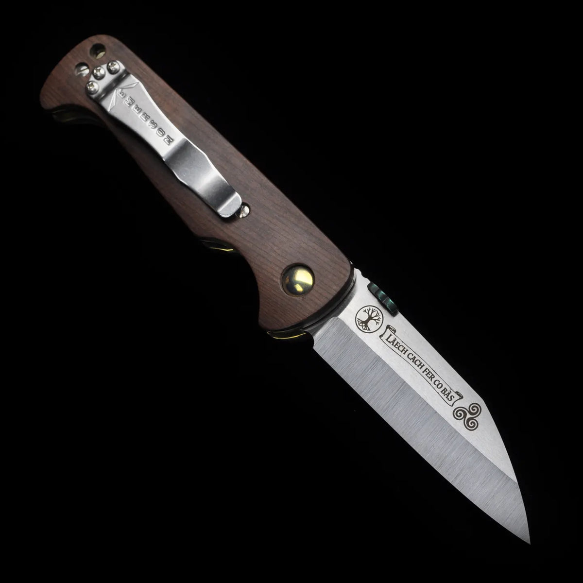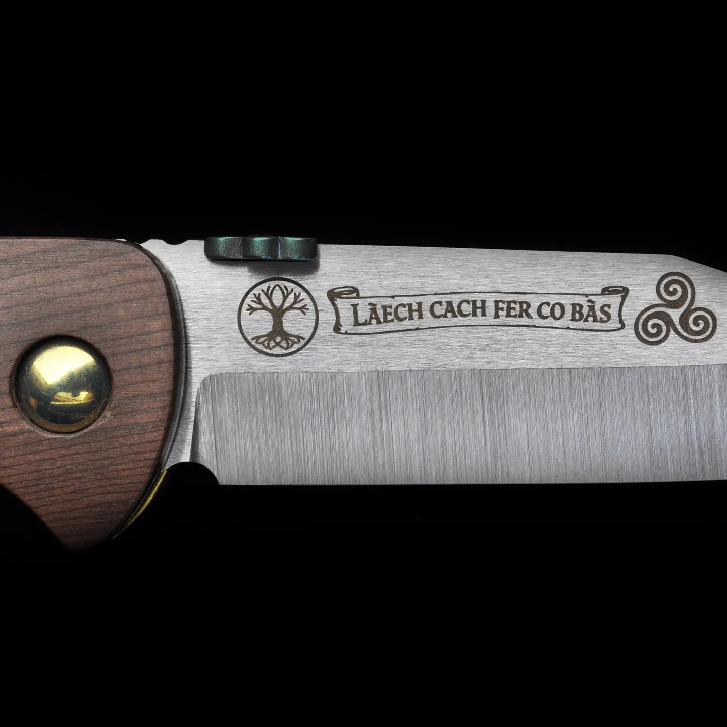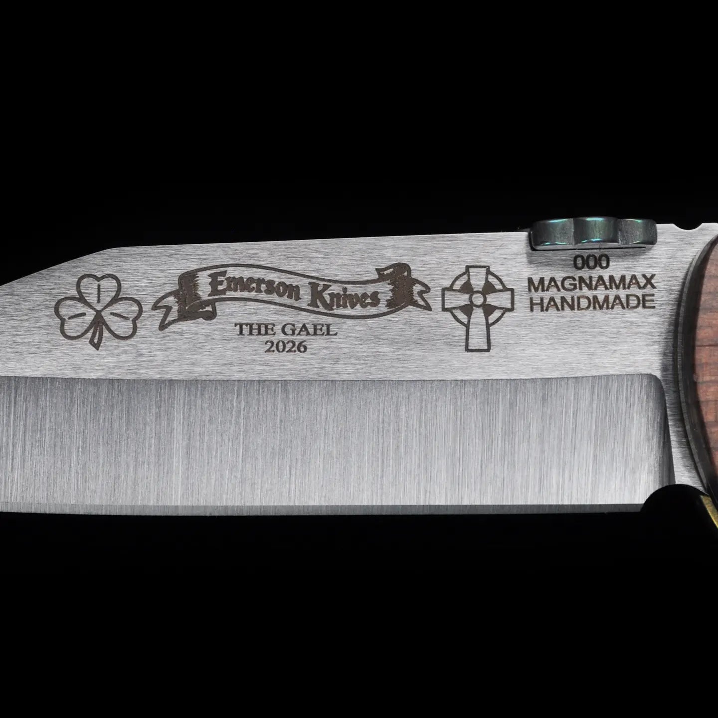 The Custom Gael Knife is hand built once each year for St. Patrick’s Day by Ernest Emerson, with only ten knives made—no more. It stands as the official Irish knife of Emerson Knives, executed in a traditional Irish blade shape and ground from Magnamax steel, then engraved with ancient Irish symbols that speak to warrior lineage, sacrifice, and legacy. The reverse of the blade bears the inscription La caech fer go bas, a quiet but absolute statement of resolve, cut permanently into steel rather than spoken aloud.